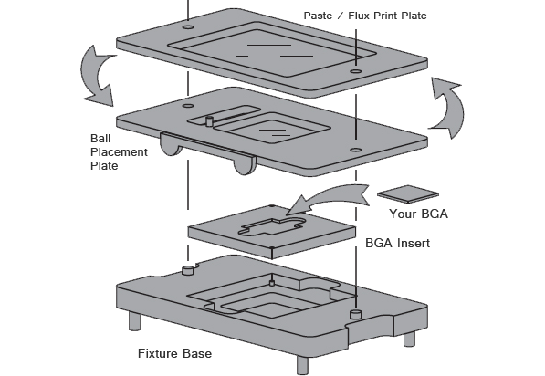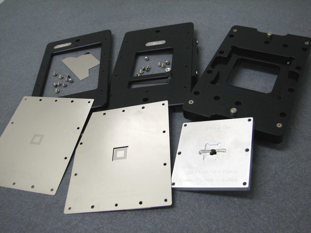 Our ReBall System is elegant in design and a snap to use. Invented to save you both time and money, It's no wonder that it's the most popular reballing system in use! The anodized frames and hardware are fully reusable. For diffenent parts we provide modular foil sets and drop in aluminum nest.